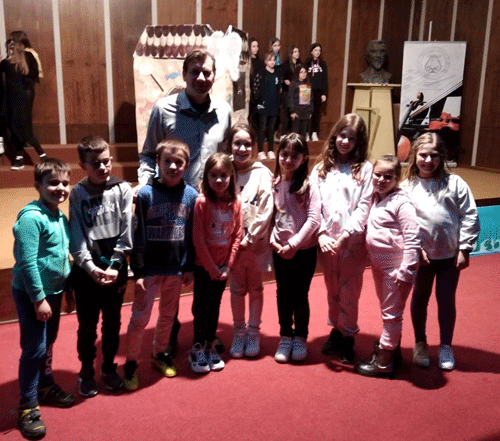 Младеновић и учитељица Весна Маринков са ученицима